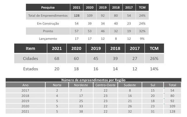 O número de novos empreendimentos no Brasil cresceu de 109 em 2020 para 128 nesse ano, segundo relatório elaborado pela Caio Calfat Real Estate Consulting